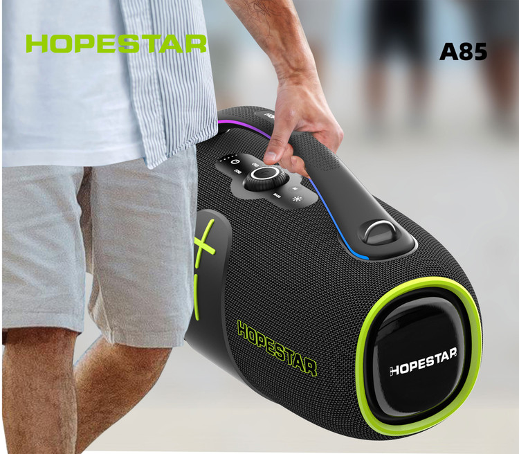 اسپیکر بلوتوثی قابل حمل هاپاستار مدل A85 با توان خروجی ۴۰۰ وات، مجهز به بلوتوث نسخه ۵ و ۳، گزینهای قدرتمند برای علاقهمندان به صدا و موسیقی است. این اسپیکر ۹/۵ کیلوگرمی با طراحی مجهز به نورپردازی RGB و قابلیت رقص نور، تجربه شنیداری و دیداری هیجانانگیزی را فراهم میکند.